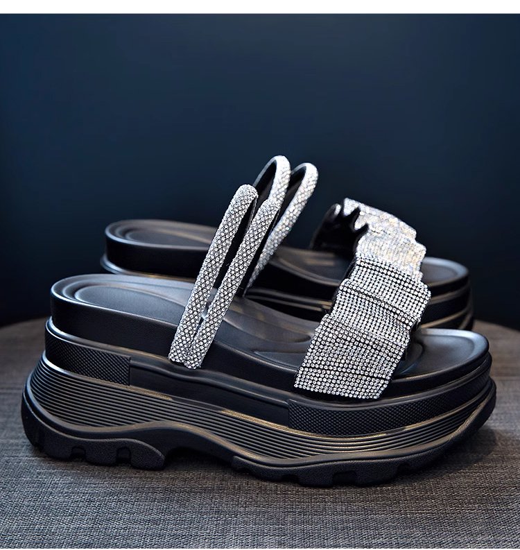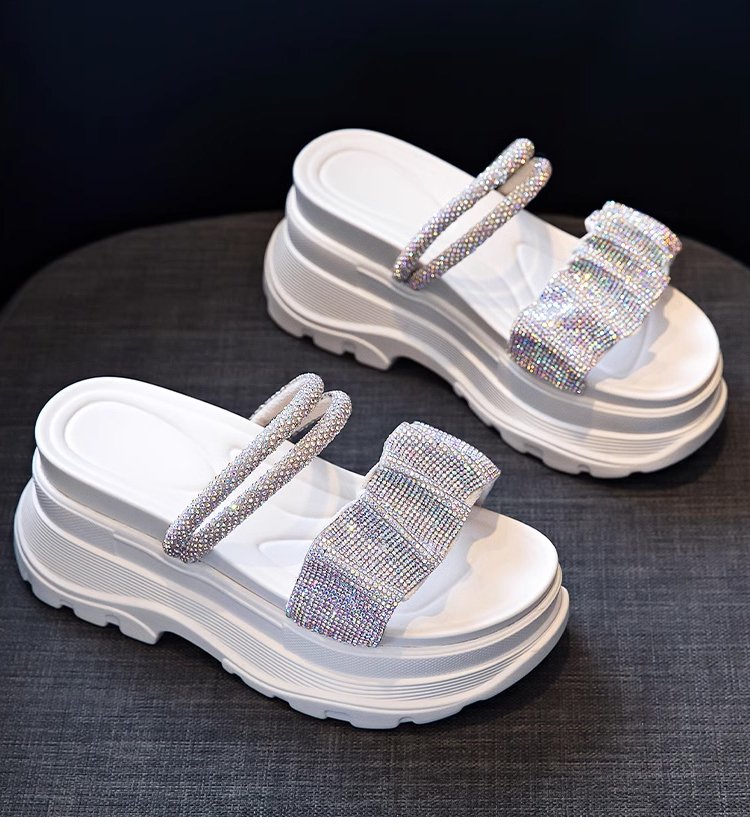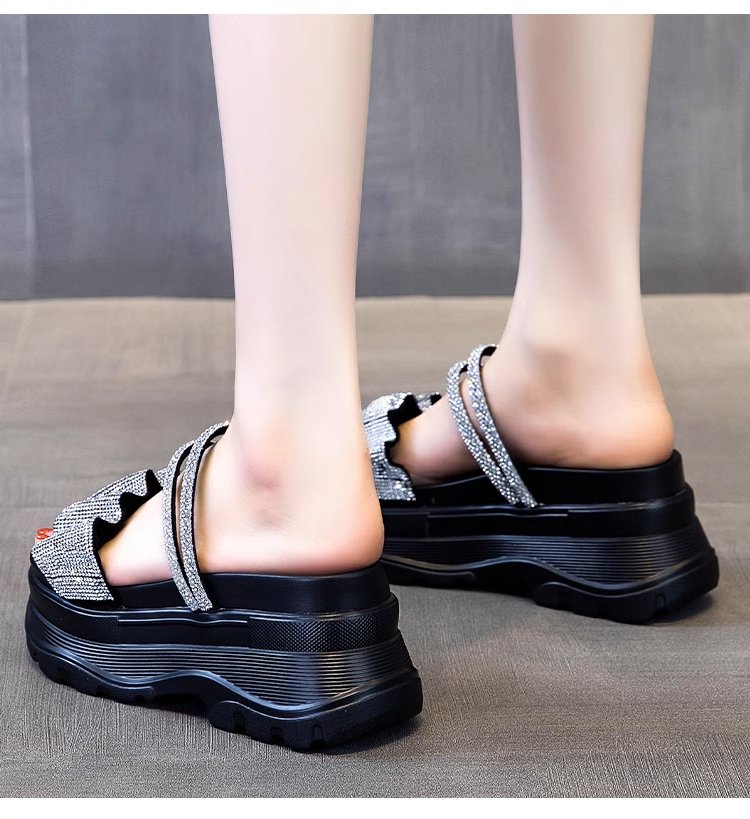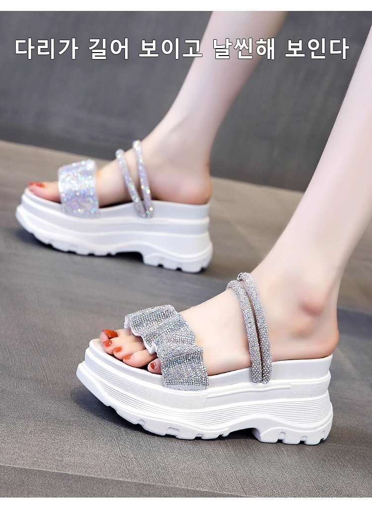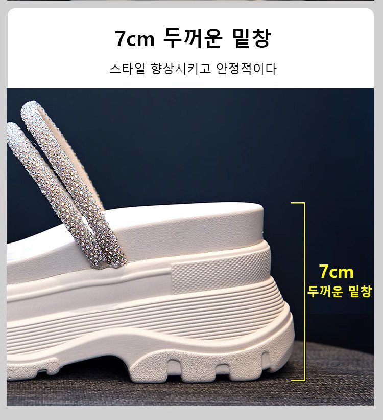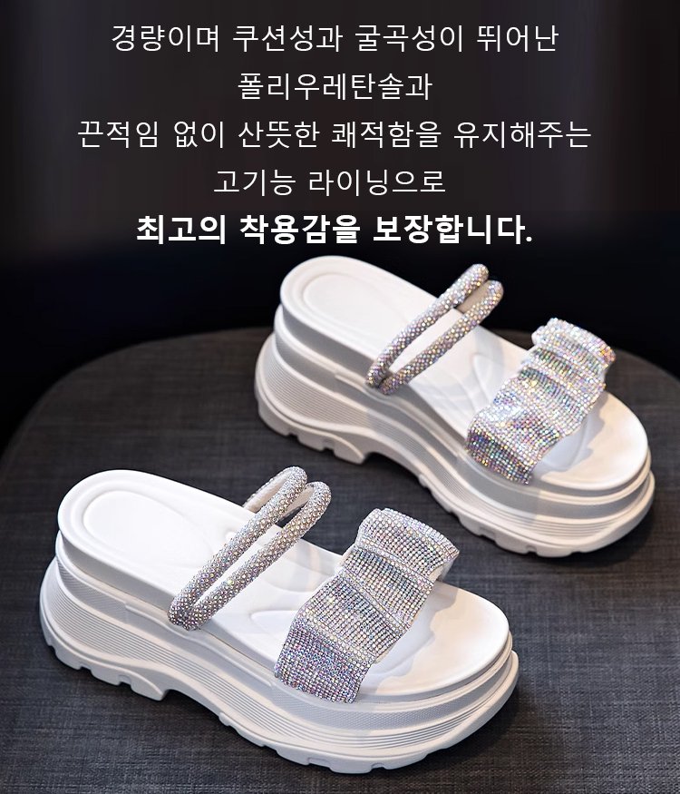 통굽 큐빅 슬리퍼